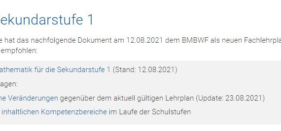 Die Beratungsgruppe Mathematik hat folgende Inhalte als neuen Fachlehrplan Mathematik für die Sekundarstufe 1 eingereicht: Quelle: LP Sekundarstufe 1 (univie.ac.at)