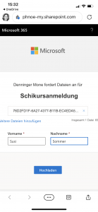 Mit einem Klick auf Hochladen wird die Datei in meinen Ordner auf OneDrive hochgeladen.