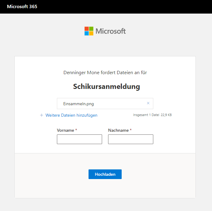 Wählt die betreffende Person, von der man eine Datei möchte, den Link aus, erhält diese eine Seite mit einem einzigen Button: