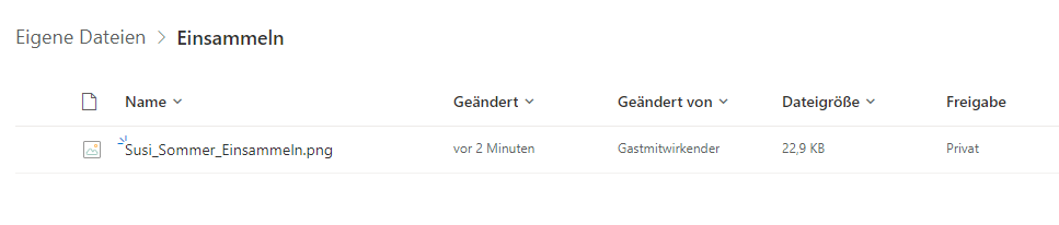 Damit du die Dateien unterscheiden kannst, werden diese automatisch mit dem eingetragenen Vor- und Nachnamen versehen.
